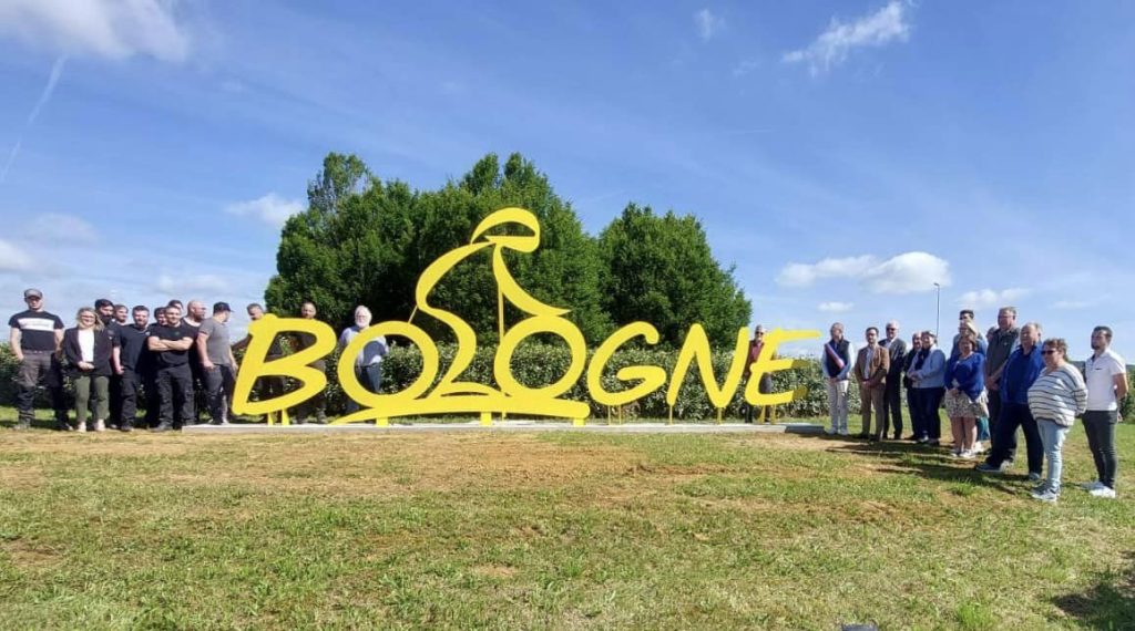 En présence des élus ainsi que des entreprises GP MECA, APPLI Color-Eric Lefebvre et K99 L’Agence, cet emblème orne désormais le rond point à l’entrée de Bologne là où les coureurs du Tour de France passeront le samedi 6 juillet.